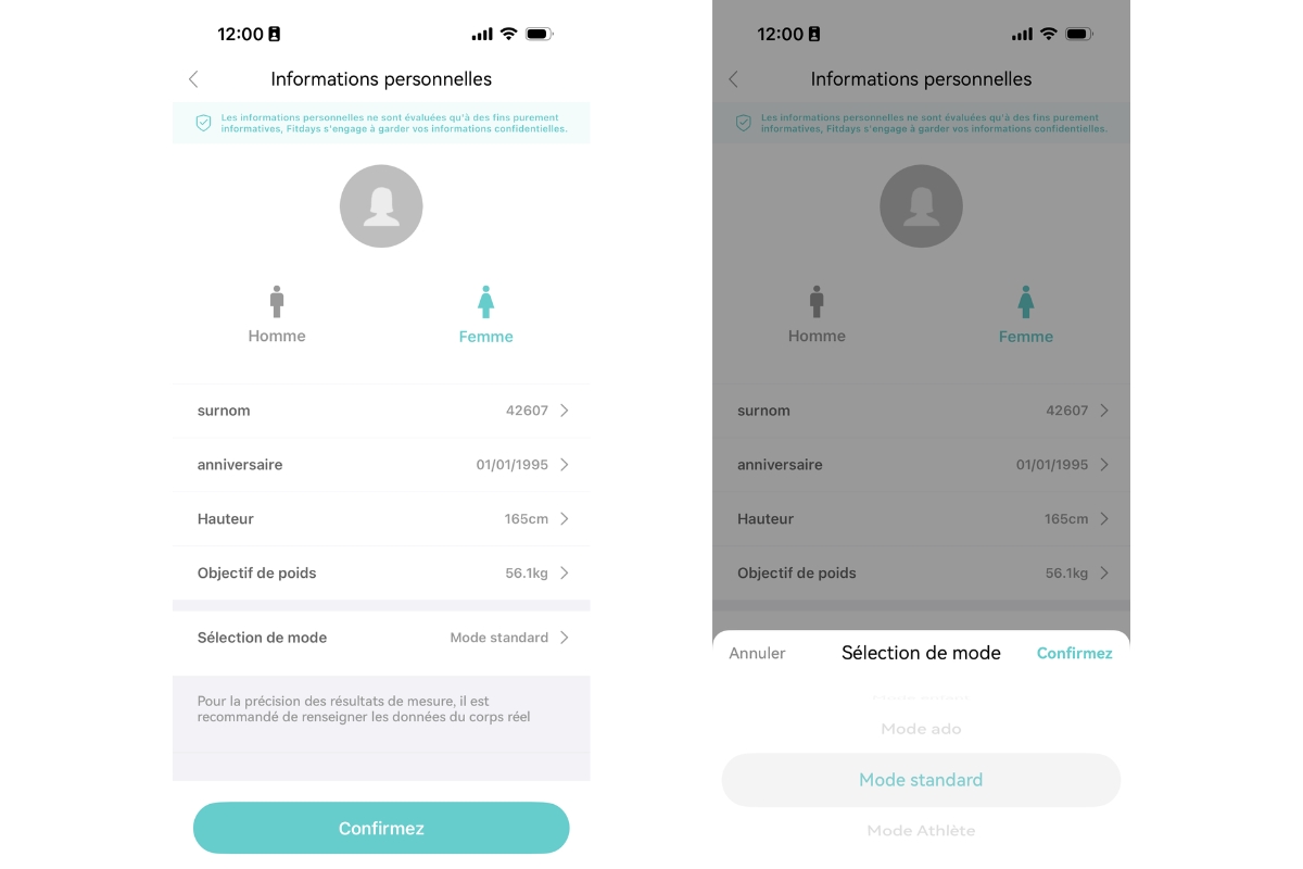 L’application permet également de créer jusqu’à 24 profils différents. Si plusieurs personnes utilisent la balance, celle-ci reconnaît automatiquement l’utilisateur lors de la pesée.